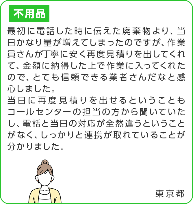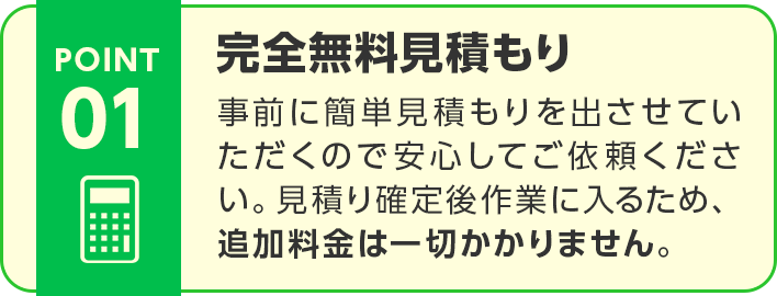 お見積り以降の追加料金はありませんのでご安心ください。